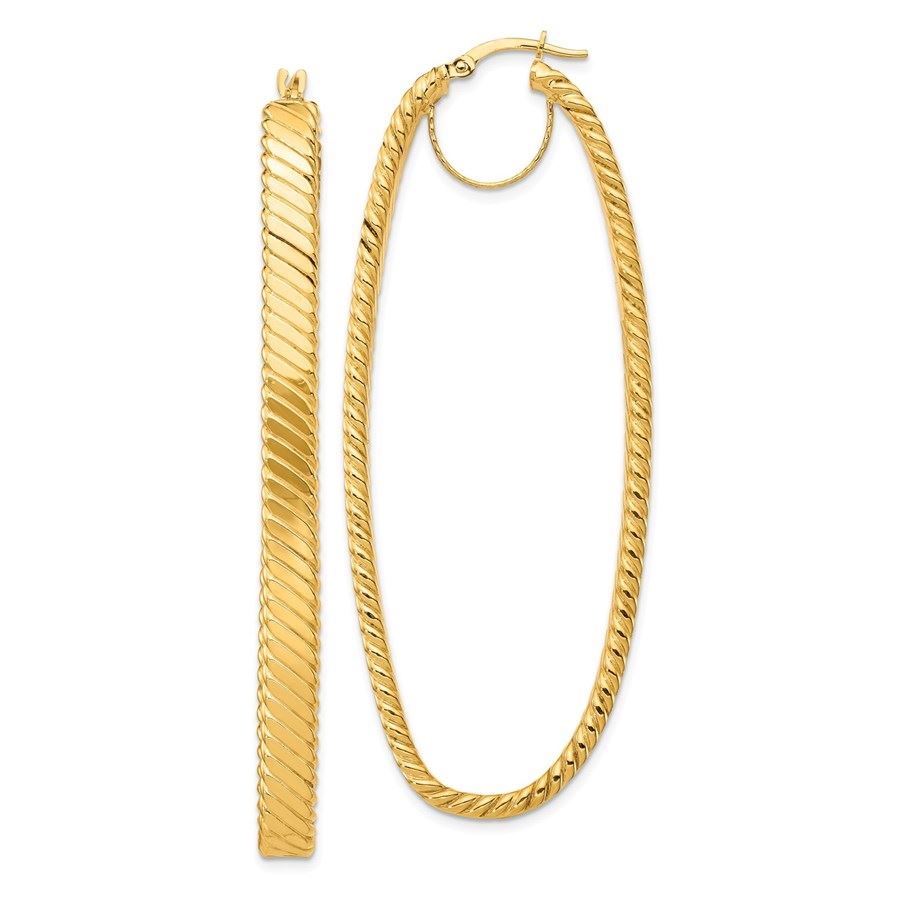 14k Yellow Gold Cascade Polished Oval Hoop Earrings - 2x26 mm