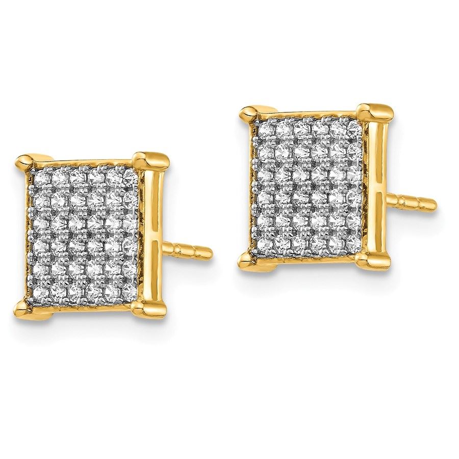 14k Yellow Gold Cubic Zirconia Pave Square Post Earrings