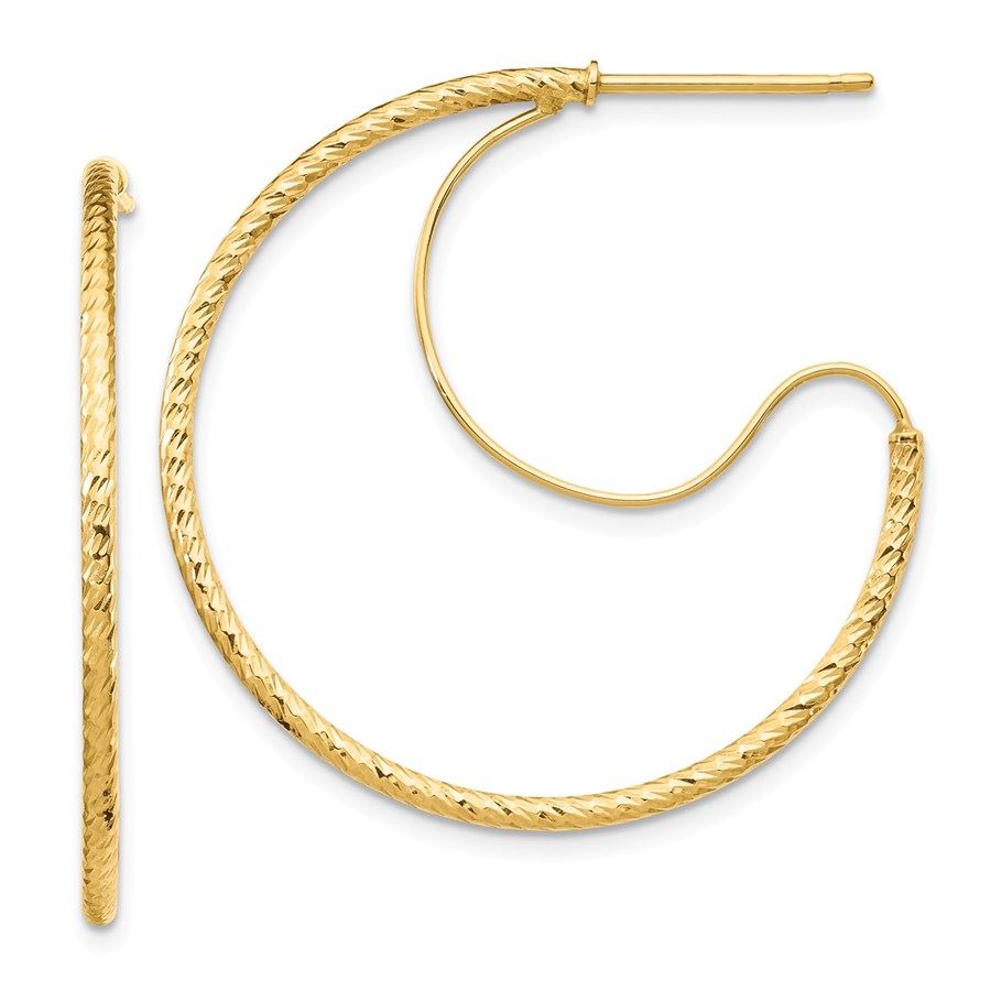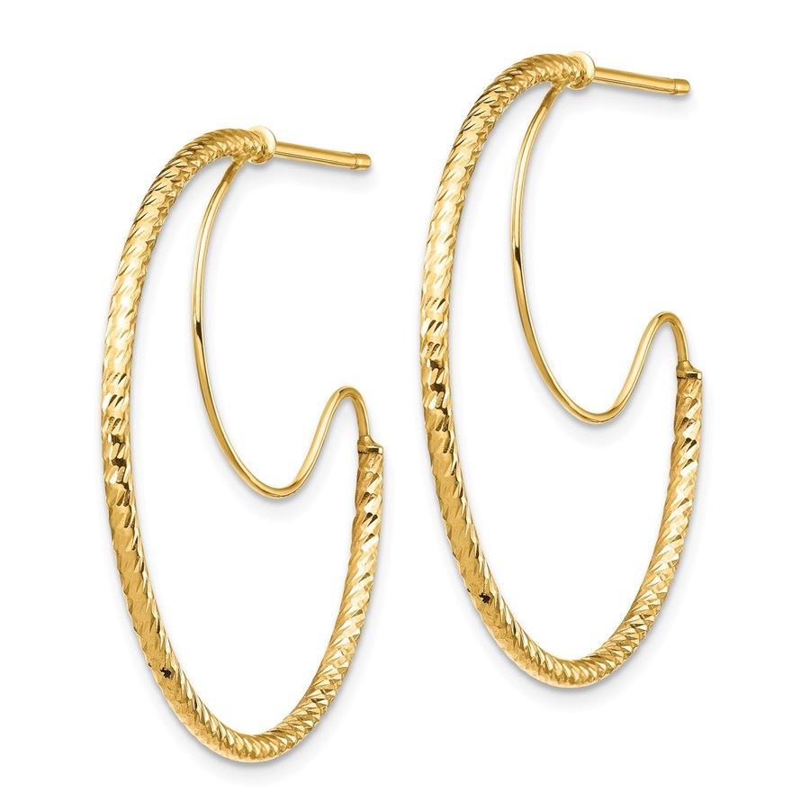 14k Yellow Gold D/C with Polished Wire Hoop Earrings - 1.5x30 mm