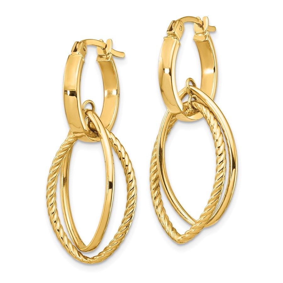 14k Yellow Gold Dangle Hoop Earrings