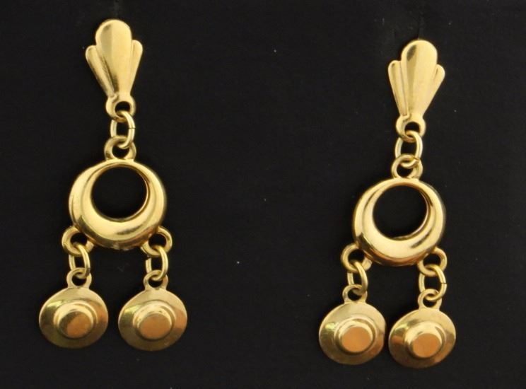 Beautiful 14k yellow gold triple circle dangle style earrings that measure 7/8" long. 1.2g