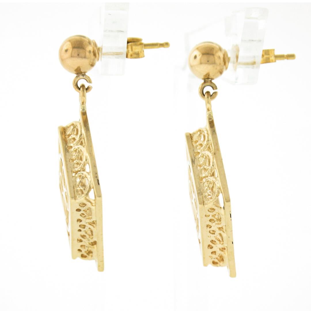 14k Yellow Gold Detailed Filigree Floral Open Work Squared Drop Dangle Earrings