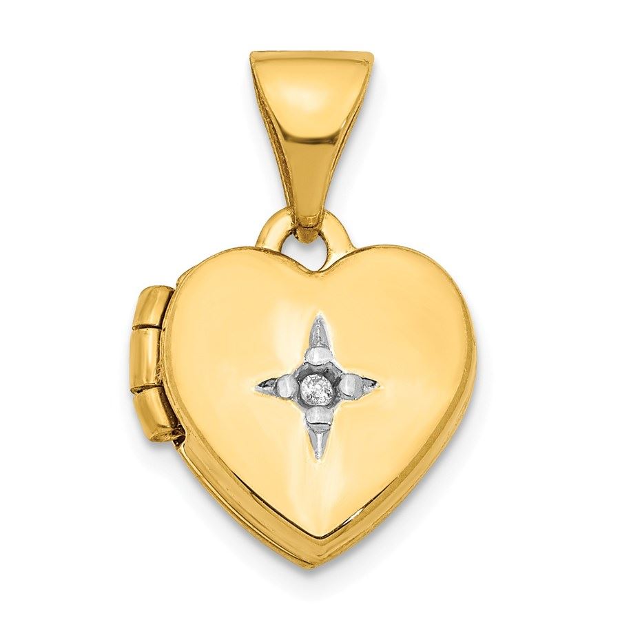 14k Yellow Gold Diamond 11 mm Heart Locket Pendant - 16 mm