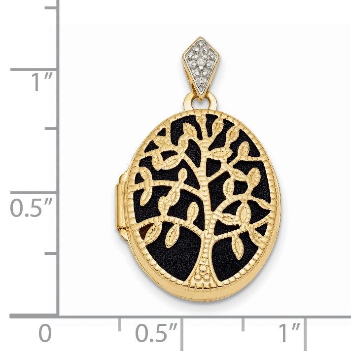 14k Yellow Gold Diamond Black Fabric Oval Tree Locket - 21 mm