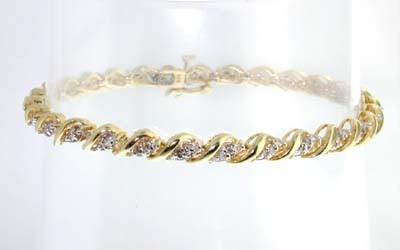 14k Yellow Gold Diamond Bracelet. The total bracelet's weight is 10.5 grams. Total weight of diamond: 2.0 cts, approximately, I color, SI-1 clarity. The Bracelet is 7" long.