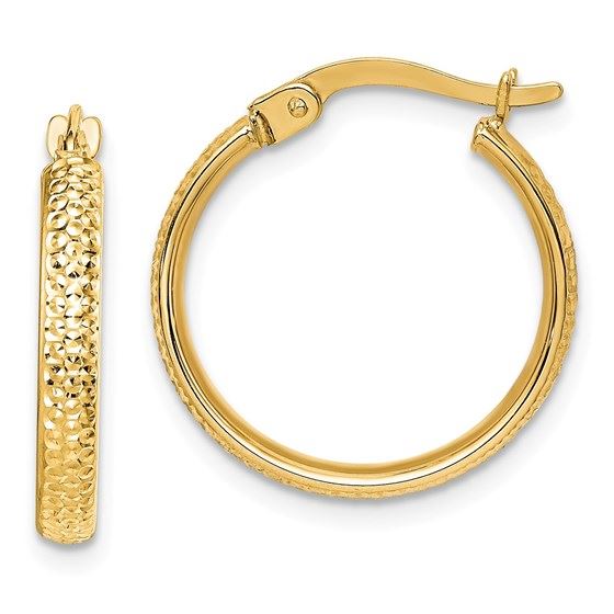 One piece 14k Yellow Gold Diamond-Cut Hammered Hoop Earrings - 20 mm