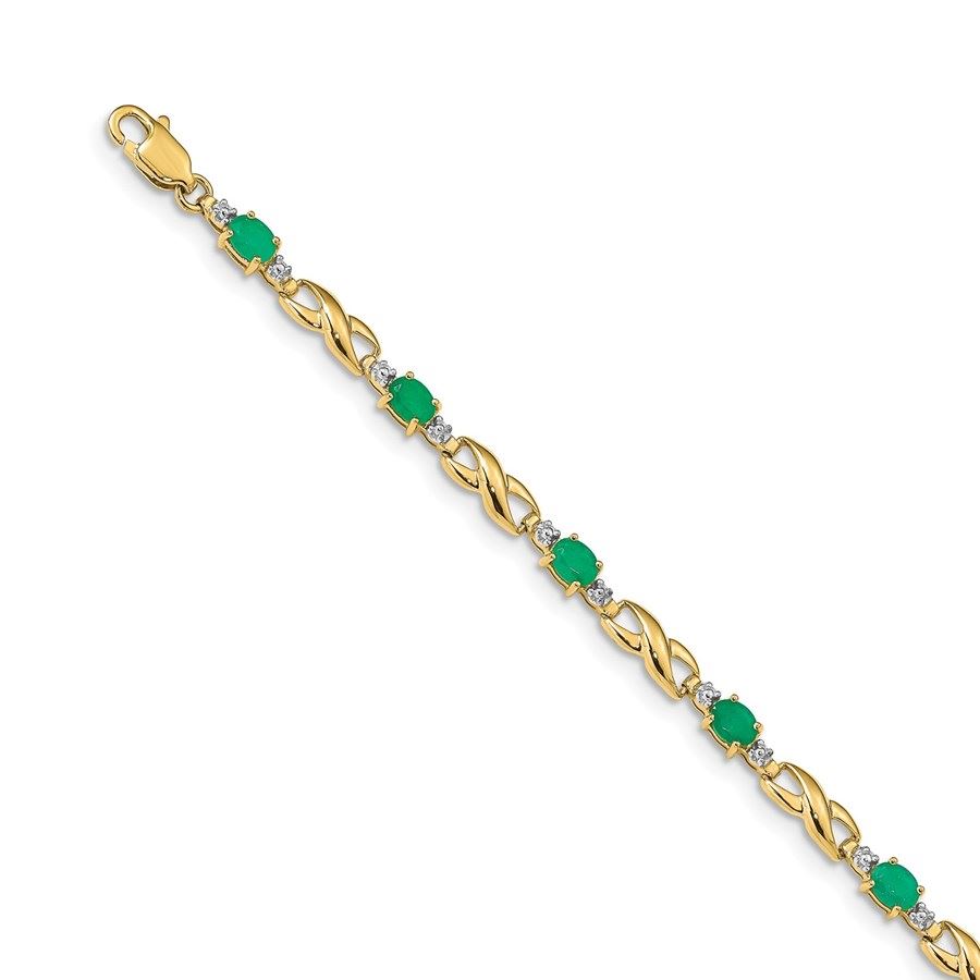 14k Yellow Gold Diamond Emerald Oval Link Bracelet - 7 in.