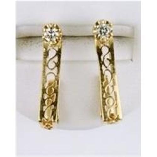 14k Yellow Gold Huggie Style Earrings, each featuring a round DIAMOND at the ear. The Diamond Total Weight = .20 Carats! There is lovely Gold latticework that extends 1/2" below the Diamond. The Earrings have post style backs for pierced ears.
