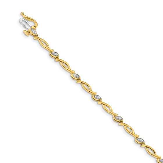One piece 14k Yellow Gold Diamond Linked Bracelet - 7 in.