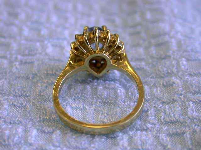 14k Yellow Gold Ring w/ Sapphire & Diamonds. The ring has a 0.50 carat diamonds in H color and SI clarity and Sapphire center stone. The size is 6.25 and it weighs 4.90 grams.