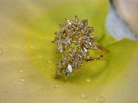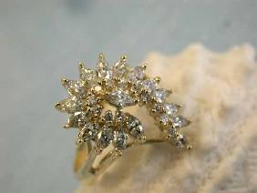 14k Yellow Gold Ring w/ Diamonds. The ring has a 1.41 carats Marquise and Round diamonds in G color and S clarity. The size is 6.5 and it weighs 4.30 grams.