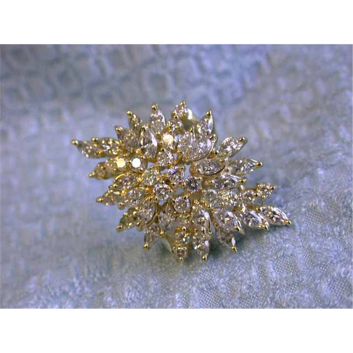14k Yellow Gold Ring w/ Diamonds. The ring has a 3.21 carats Marquise diamonds in G color and SI clarity and a 1.20 carats Round Diamonds in G color and SI clarity. The size of this is 7.25 and it weighs 14.40 grams.