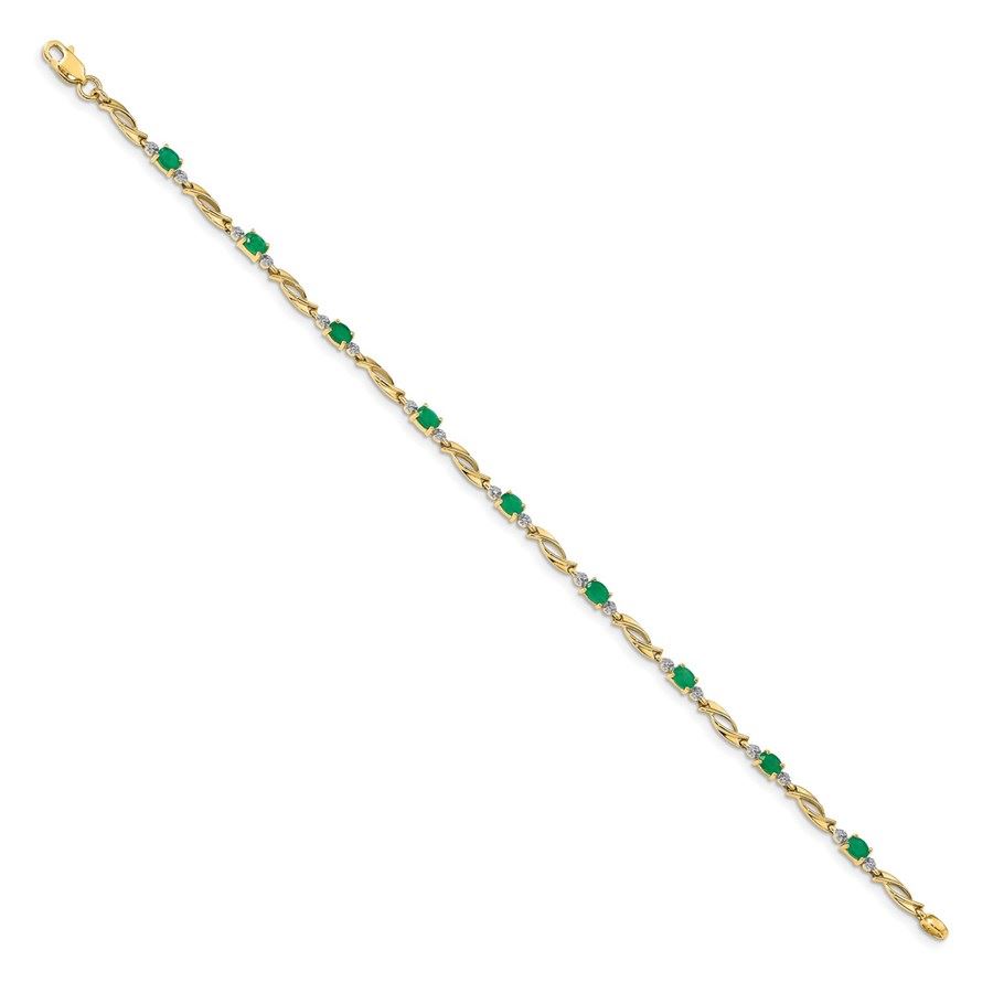 14k Yellow Gold Diamond and Emerald Oval Link Bracelet - 7 in.
