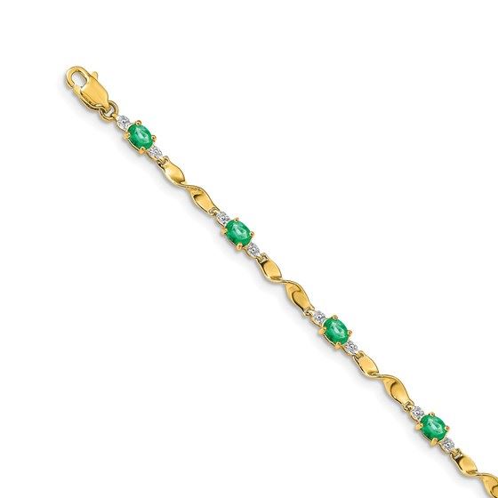 One piece 14k Yellow Gold Diamond and Emerald Oval Linked Bracelet - 7 in.