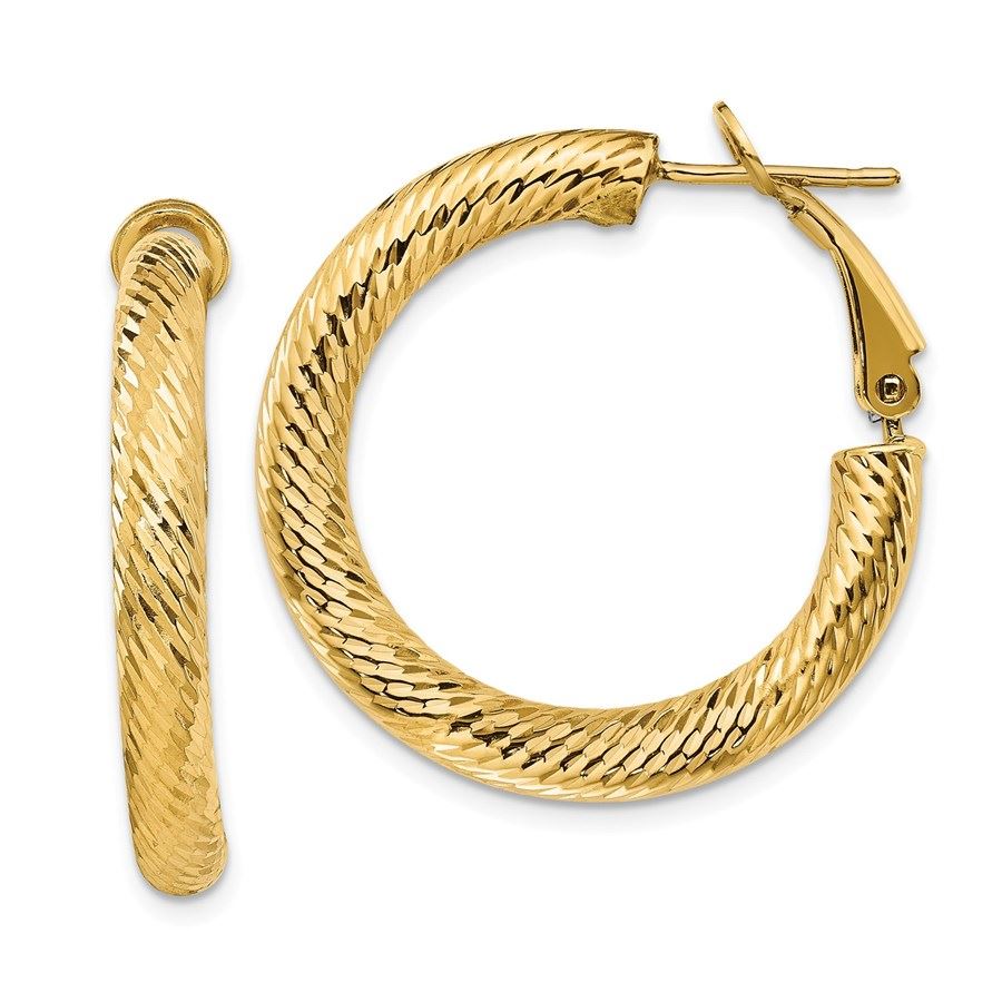 14k Yellow Gold Diamond-cut Omega Back Hoop Earrings - 4x20 mm