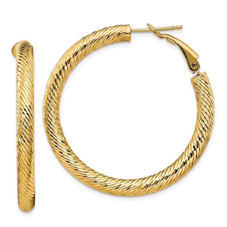 14k Yellow Gold Diamond-cut Omega Back Hoop Earrings - 4x30 mm