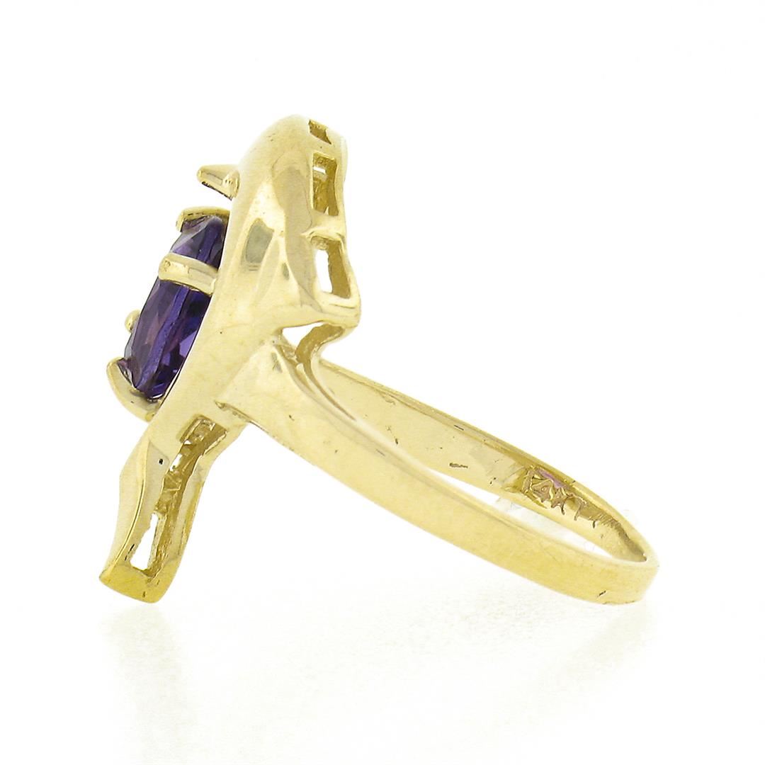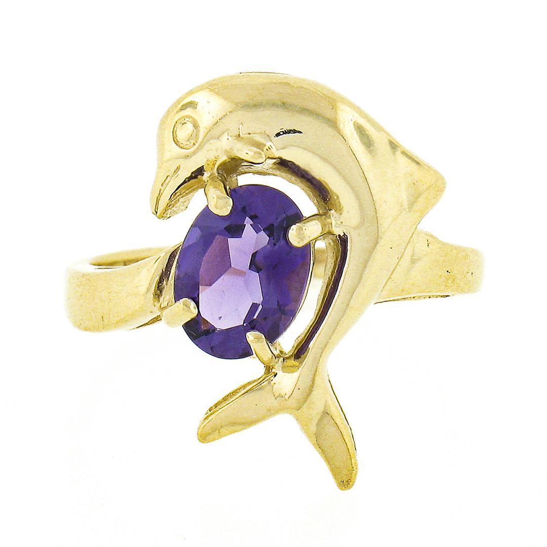 A solid 14k yellow gold ring, with 1 oval brilliant cut natural amethyst (7x5mm - 0.90ct). The ring is size 4.5, weighs a total of 2.72 grams, and measures 17.0mm wide.