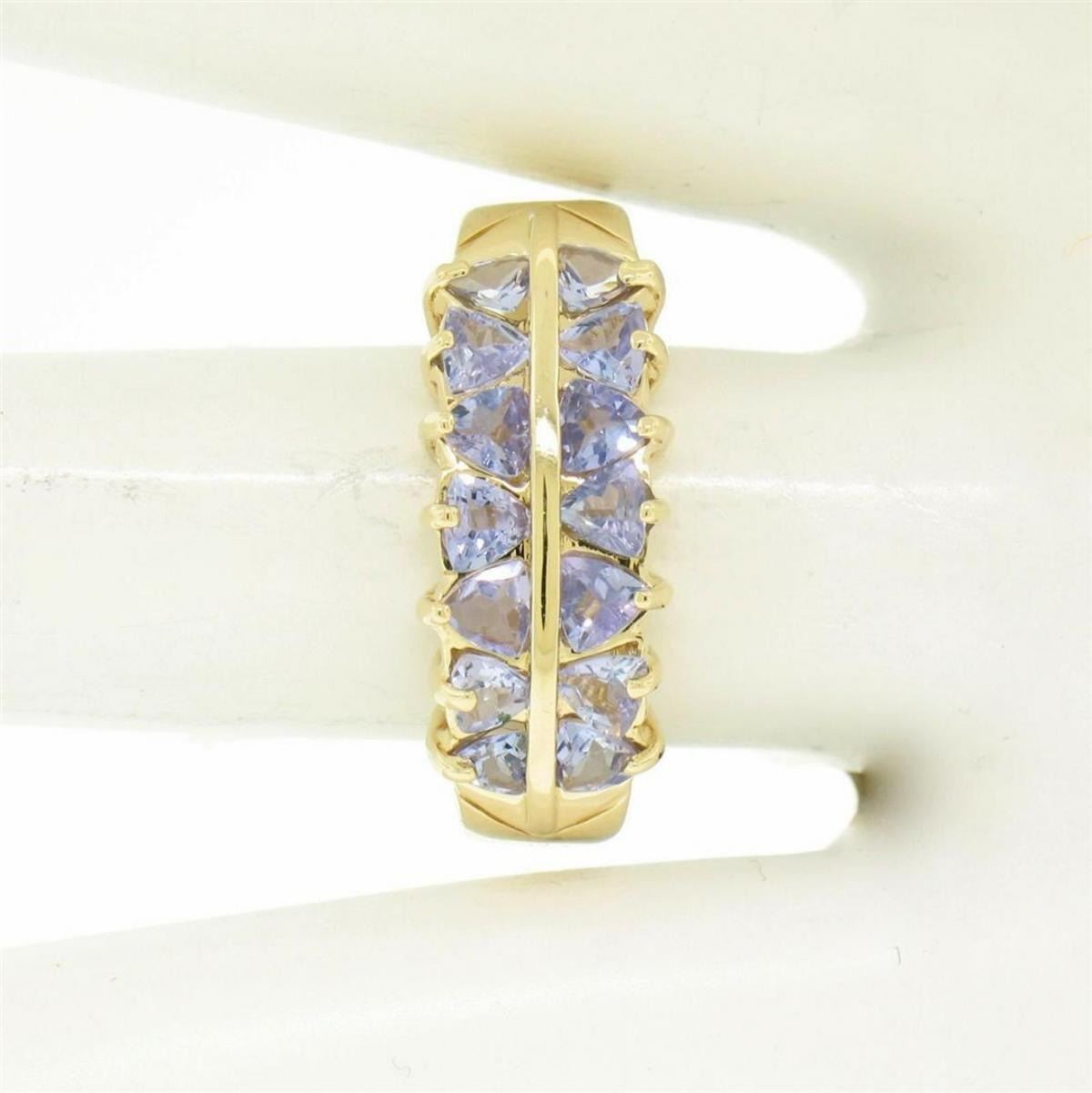14k Yellow Gold Dual Two Row 1.40 ctw 14 Trillion Cut Natural Tanzanite Band Rin