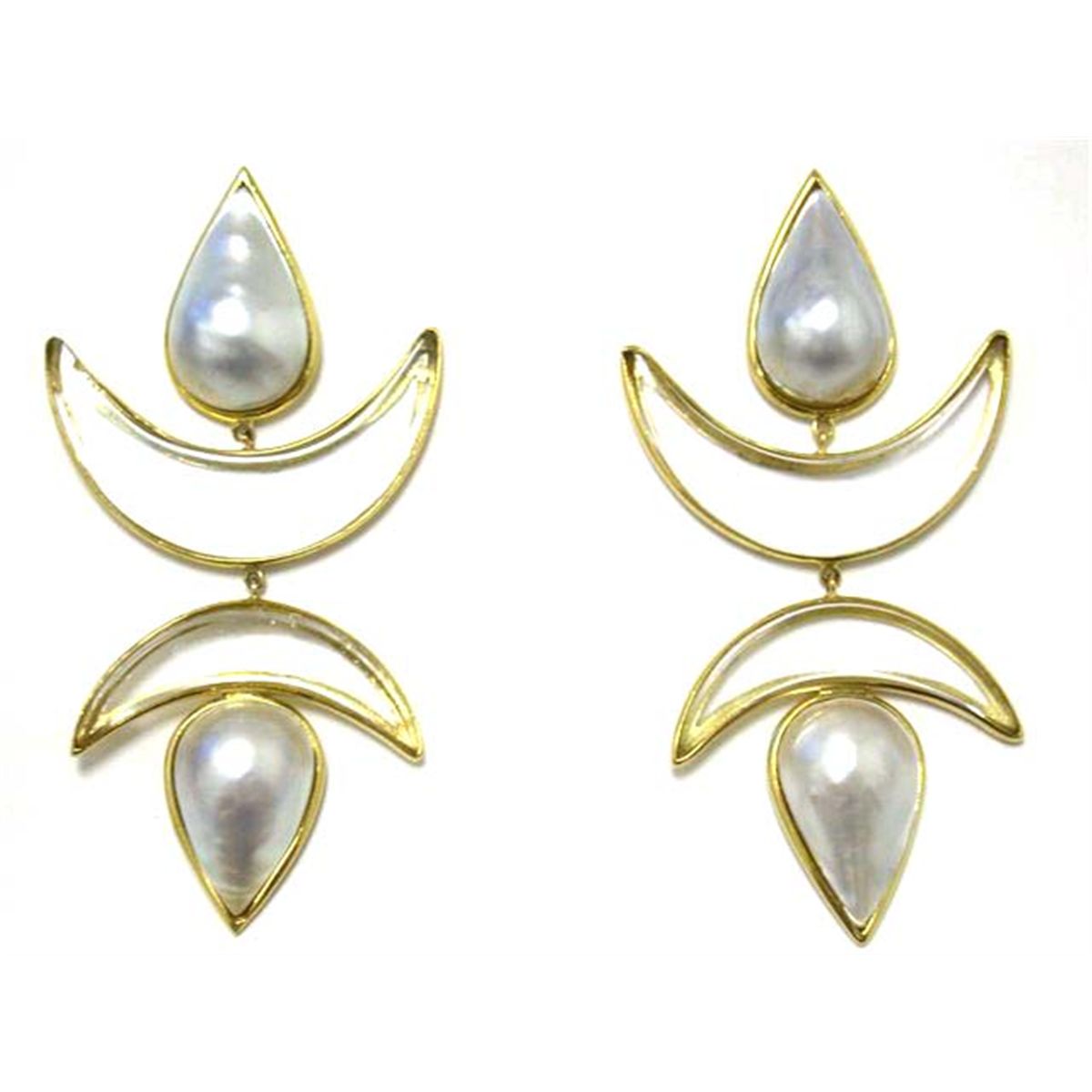 14k Yellow Gold Earrings with Pearl. Length - approximately 3.5 inches long and weighs 35 grams