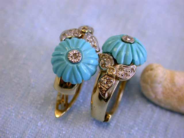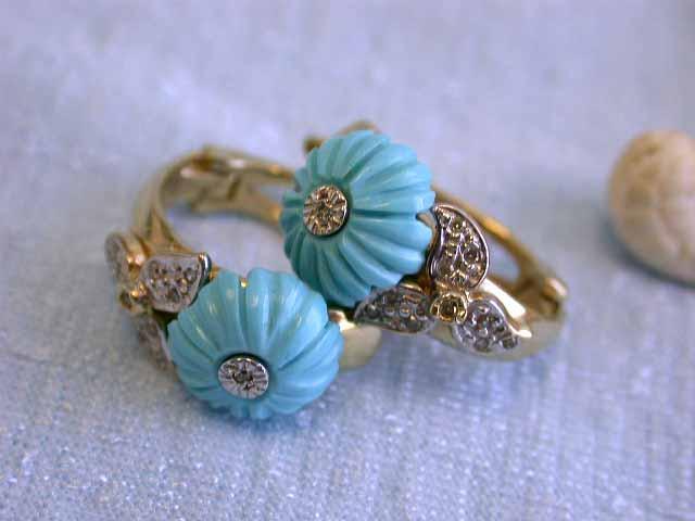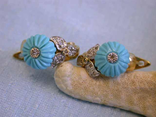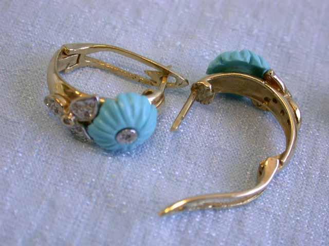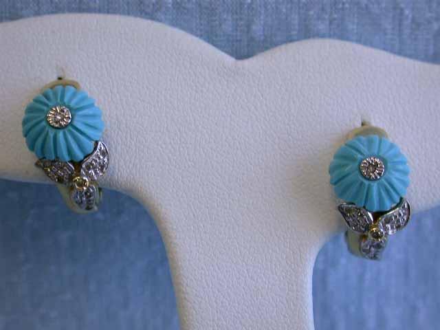 14k Yellow Gold Earrings with Turquoise and Diamonds. The Earrings are Clip On and the Weight is 6.3 grams.