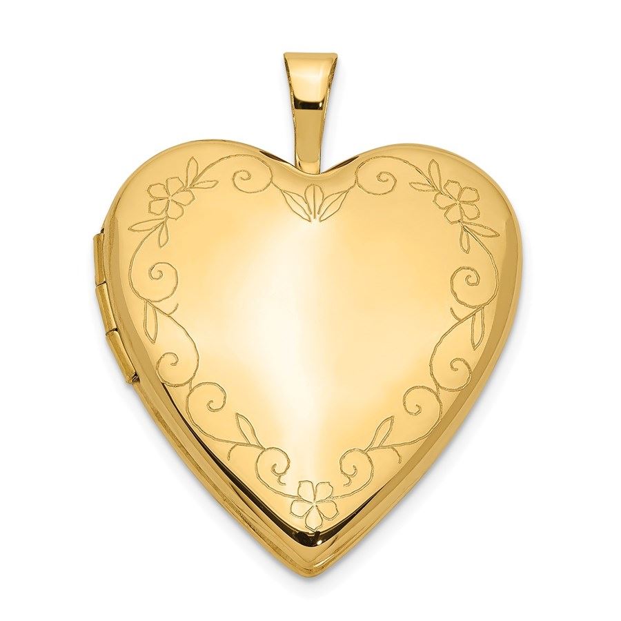14k Yellow Gold Flower Vine Border Heart Locket - 25 mm