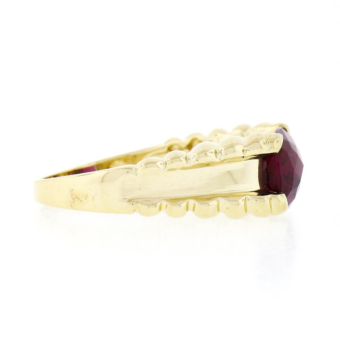 A solid 14k yellow gold solitaire rinf, with 1 Gia certified cushion cut natural tourmaline (3ct). The ring is size 9.0, weighs a total of 5.94 grams, and measures 8.50mm wide. Comes with all original relevant certifications.