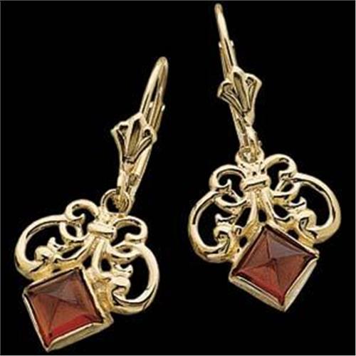 Antique Style 14k Yellow Gold Earrings each featuring a round Genuine GARNET surrounded by filigree work. The Garnet Total Weight = One Carat! The Earrings have earwire tops for pierced ears.