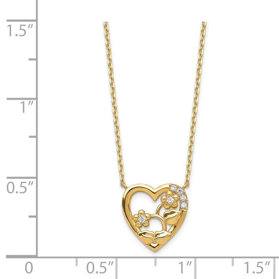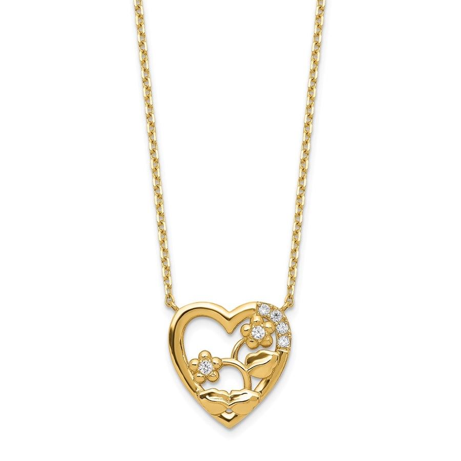 14k Yellow Gold Heart with Flowers & CZ Necklace - 20 in.