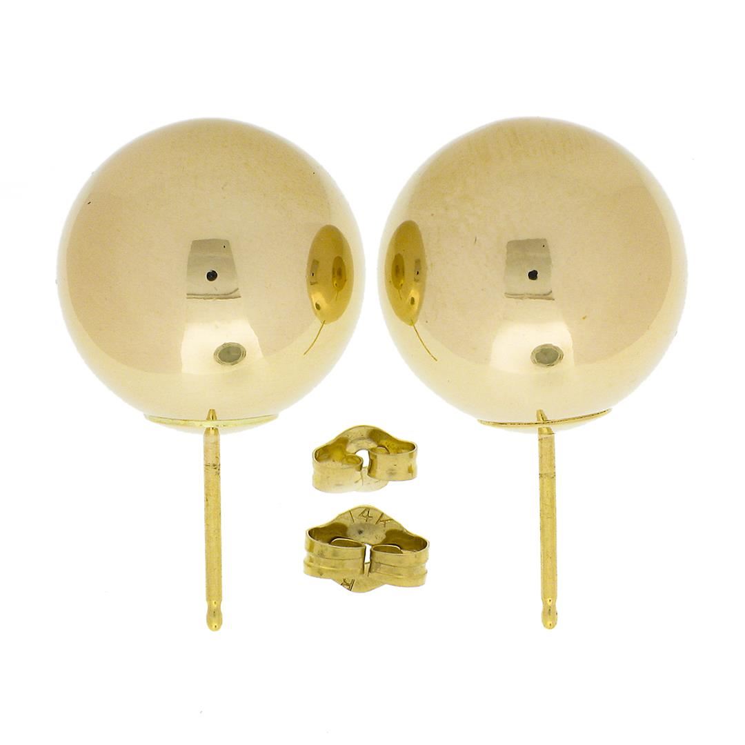 An estate solid 14k yellow gold ball stud earrings.The earrings measure approximately 14mm in diameter and weigh a total of 3.13 grams.
