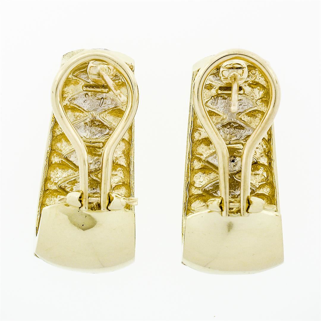 A pair of solid 14k yellow gold cuff earrings. The earrings measure approximately 24.64x11.37mm and weigh a total of 10.79 grams.