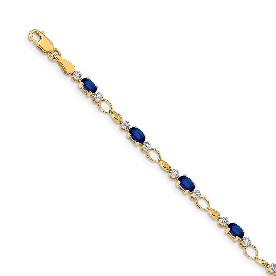 14k Yellow Gold Open-Link Diamond/Sapphire Bracelet - 7 in.