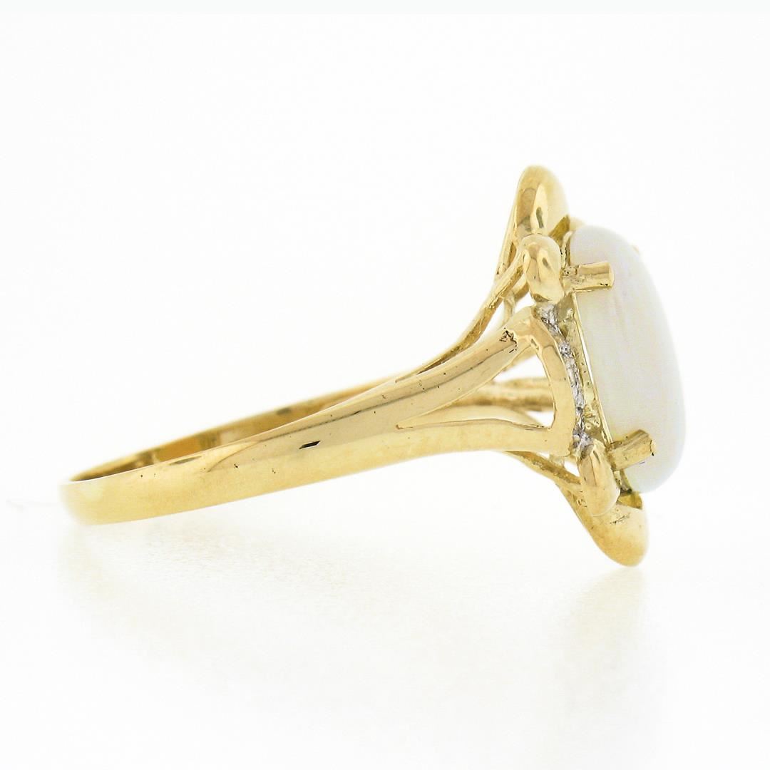 14k Yellow Gold Oval Cabochon Australian Opal w/ Diamond & Scalloped Frame Ring