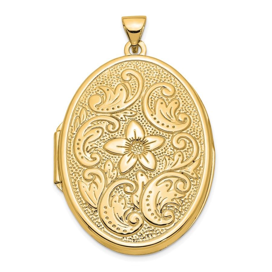 14k Yellow Gold Oval Flower With Scrolls Locket - 32 mm