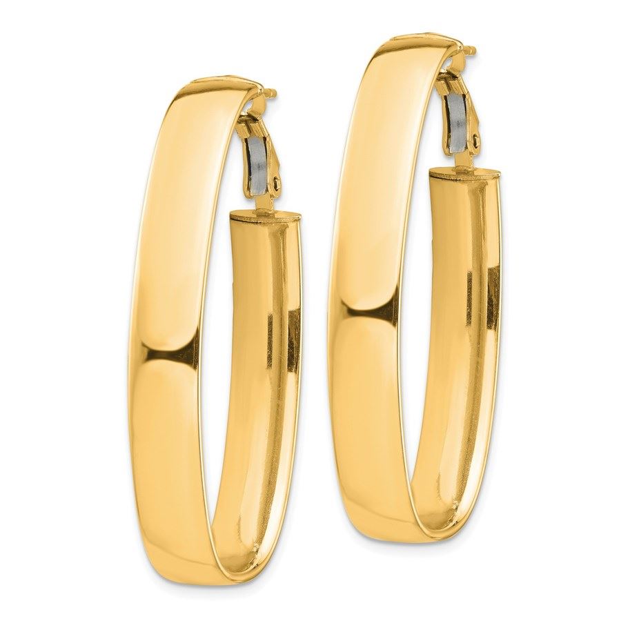 14k Yellow Gold Oval Omega Back Hoop Earrings - 7x22 mm