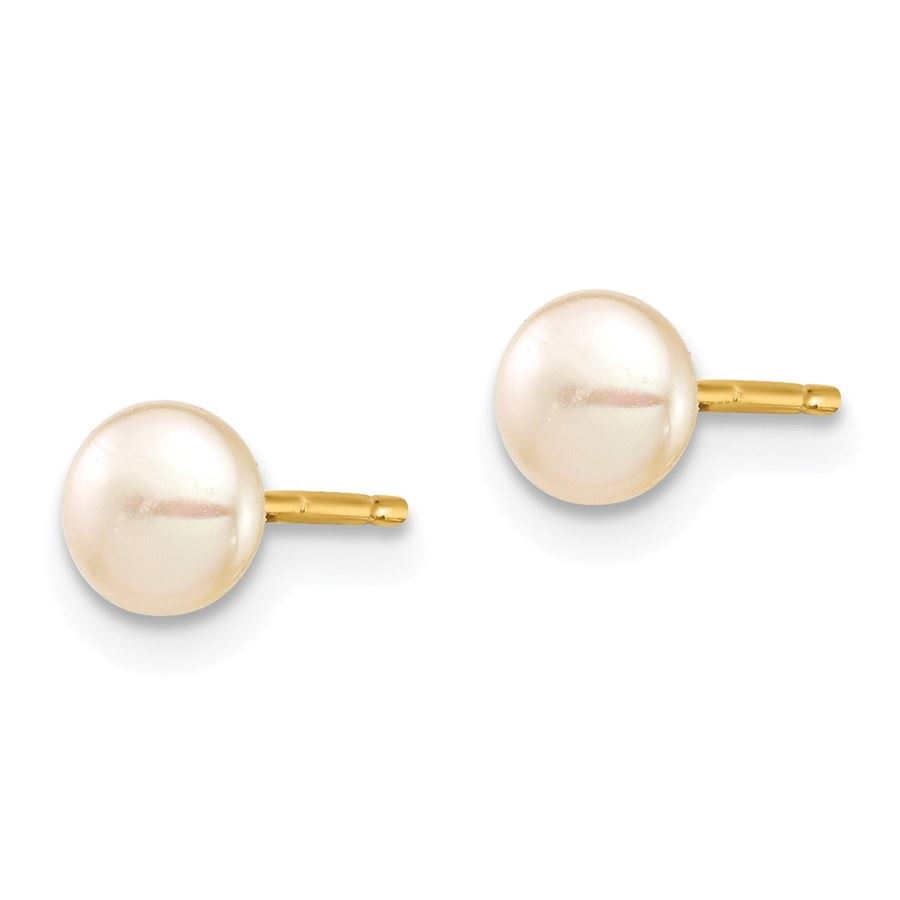 14k Yellow Gold Pink Button Pearl Stud Post Earrings - 4-5 mm