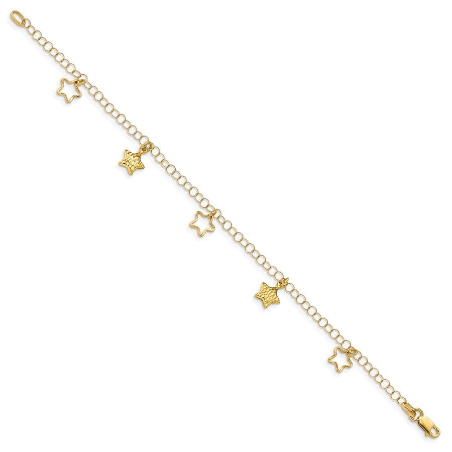 14k Yellow Gold Polished & D/C Stars Bracelet - 7 in.