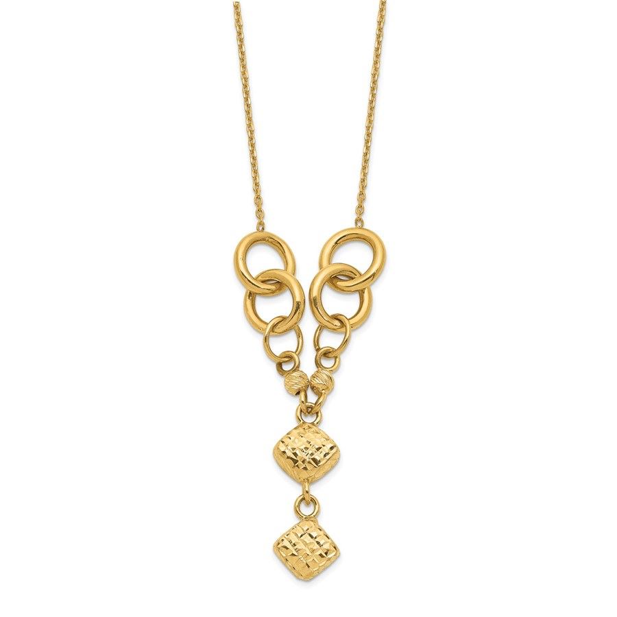 14k Yellow Gold Polished & D/C w/2 in ext Necklace - 18 in.