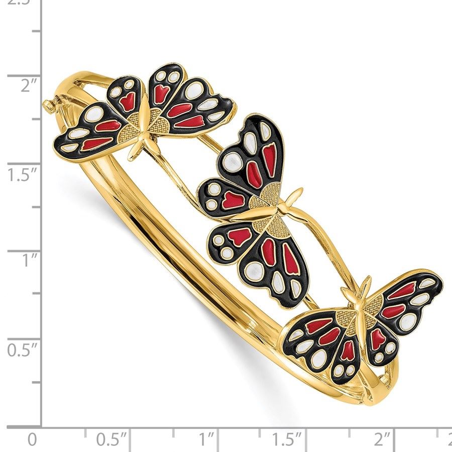 14k Yellow Gold Polished Enameled Butterfly Hinged Bracelet