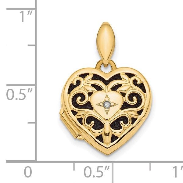 14k Yellow Gold Polished Filigree Diamond Heart Locket - 15 mm