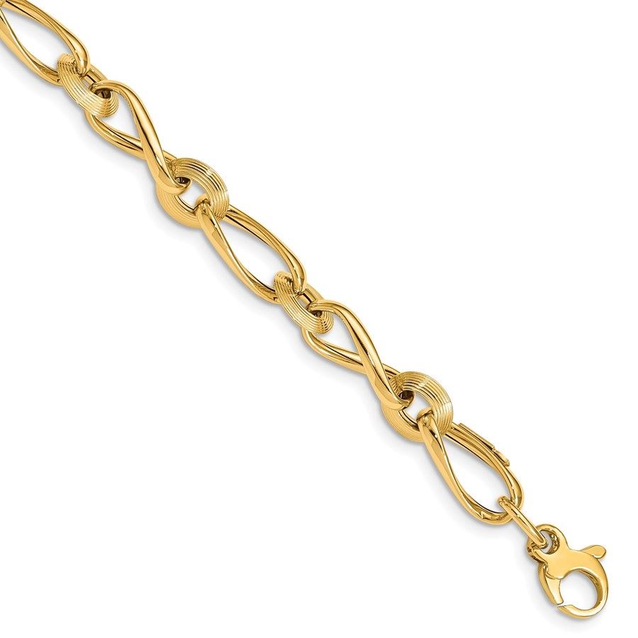 14k Yellow Gold Polished & Grooved Fancy Link Bracelet - 8 in.