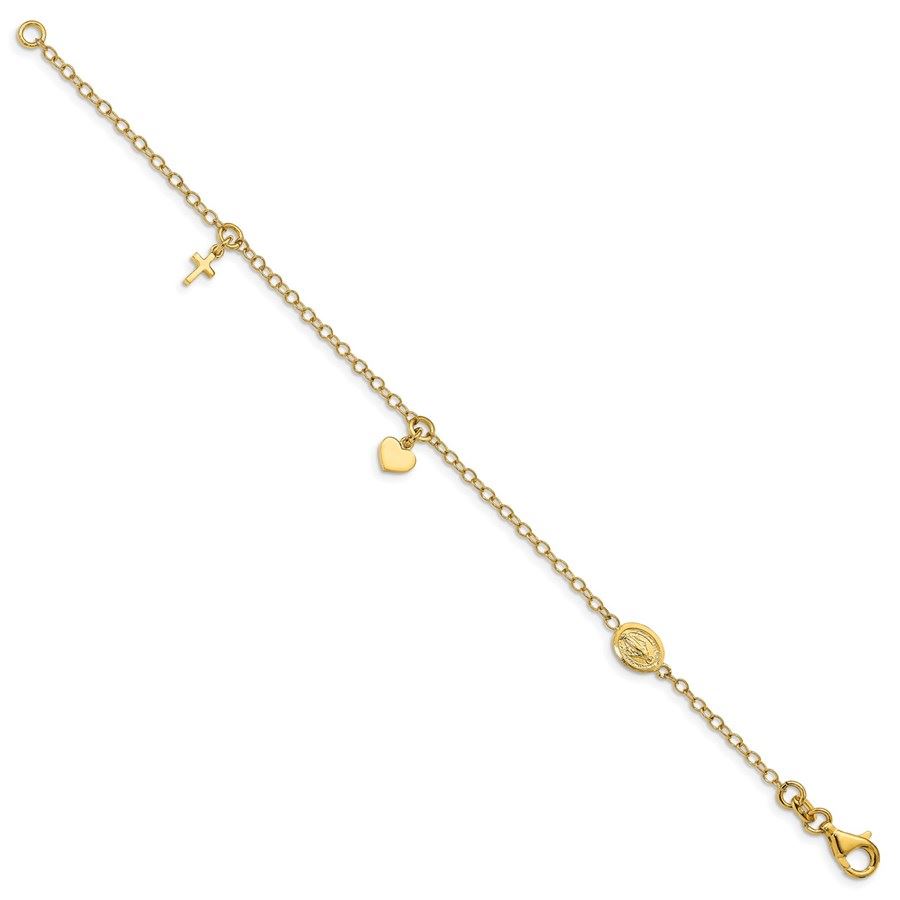 14k Yellow Gold Polished Heart Cross Religious Bracelet - 7 in.