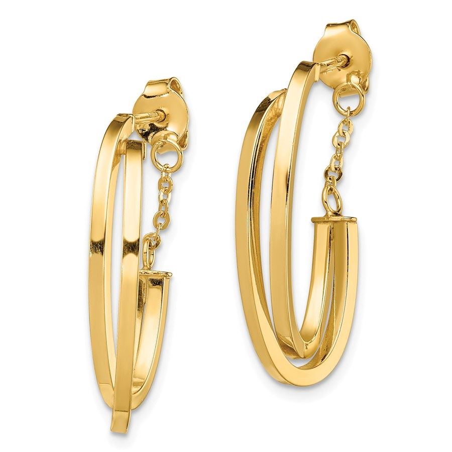 14k Yellow Gold Polished Hoop w/Chain Post Earrings - 39 mm