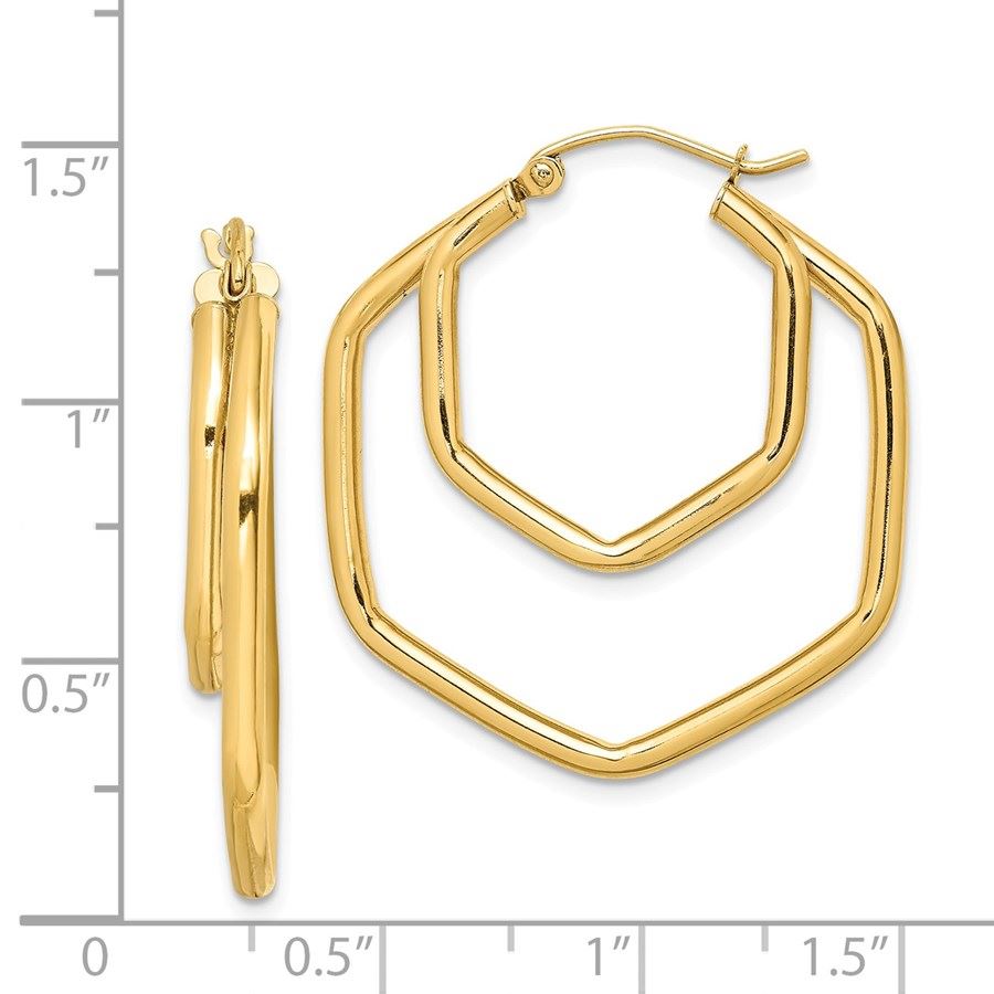 14k Yellow Gold Polished Triangle Hoop Earrings - 35 mm
