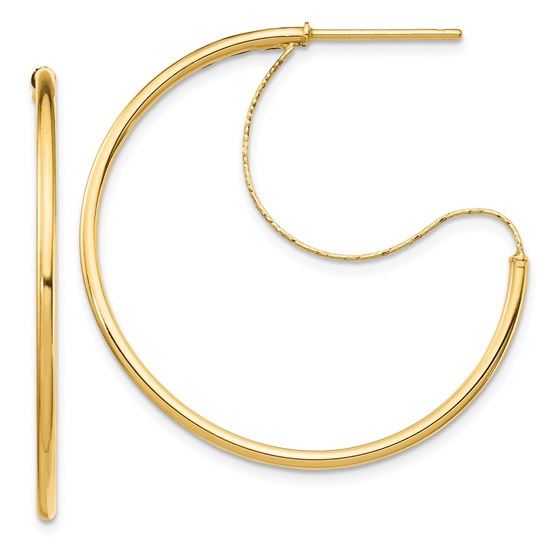 One piece 14k Yellow Gold Polished with D/C wire Hoop Earrings - 1.5x30 mm