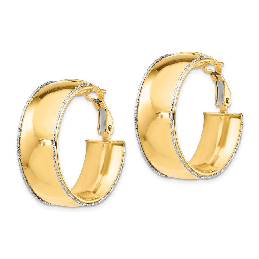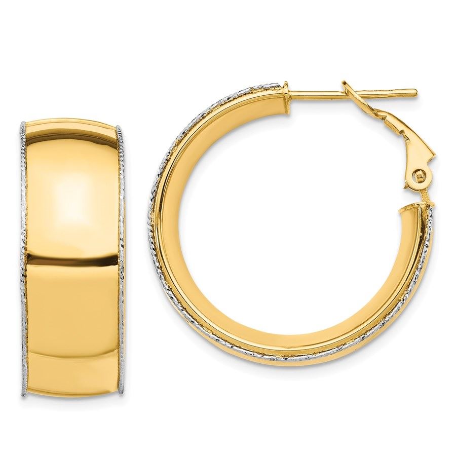 14k Yellow Gold Polished with White Gold Round Hoop Earrings