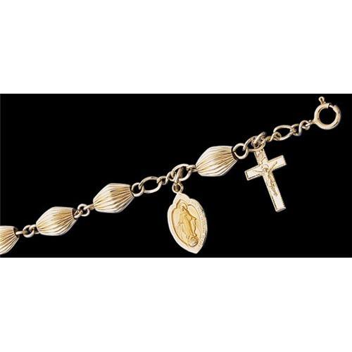 14k Yellow Gold ROSARY BRACELET featuring fluted 14k Gold links, a 14k Gold Crucifix Charm, and a 14k Gold Miraculous Medal 'O Mary Conceived Without Sin Pray For Us'. The bracelet is 7" in length, and of course it IS in Mint condition.