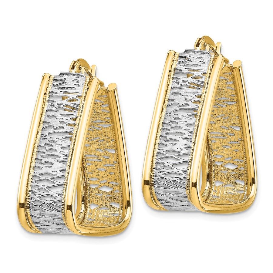 14k Yellow Gold & Rhodium Diamond Cut Triangle Hoop Earrings