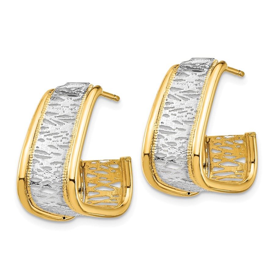 14k Yellow Gold & Rhodium Diamond Cut Triangle Hoop Post Earrings