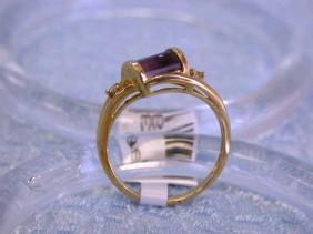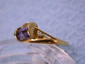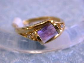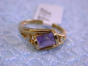 14k Yellow Gold Ring with Diamonds - 0.04 carats and Amethyst. The ring size is 6.75 and weighs 3.00 grams