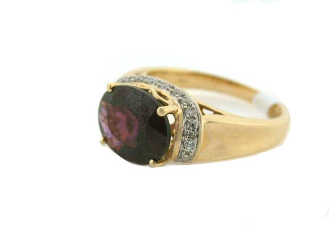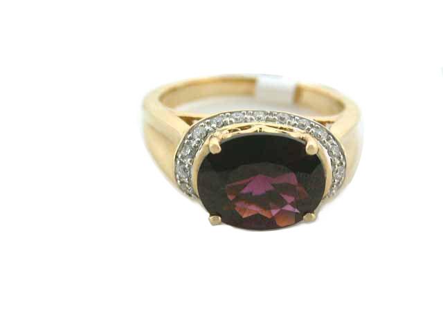 14k Yellow Gold Ring with Garnet - 2.70 and Diamonds - 0.23 carat. The ring size is 7 and weighs 6.10 grams